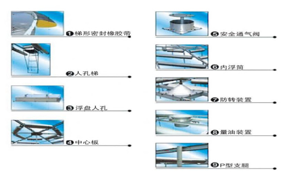 浮盤安裝用螺栓連接,無需焊接,特別適用于改造罐;零部件實現模具化、標準化生產,互換性能好。